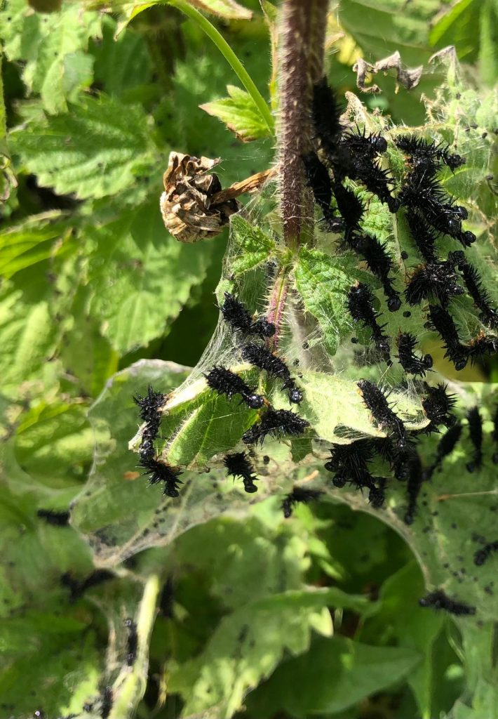 To support their survival, please do not burn any garden waste in or near this area for the time being. The caterpillars are currently feeding on the nettles, and disturbing their habitat could prevent them from completing their life cycle.