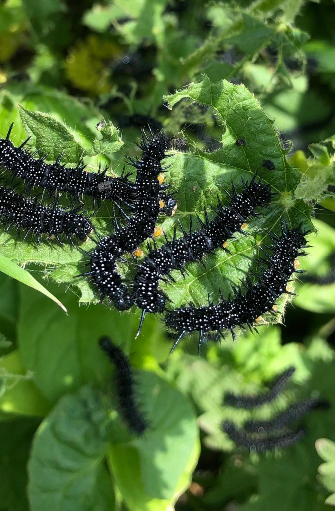 Eagle eyed Quinta Allotment holders have made a delightful discovery: peacock butterfly caterpillars and eggs have been spotted on a nettle patch near the garden waste burning pile. This is a good sign of a healthy ecosystem at our allotments, and we’re asking our allotment holders to help protect these developing butterflies.
